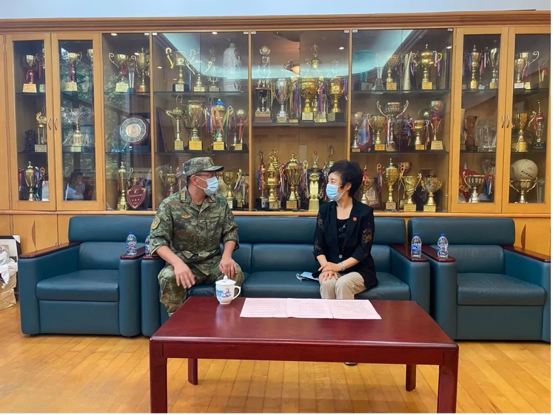 军训汇报大会开始前,焦扬会见承训部队领导,感谢部队克服各种困难,精心挑选60名骨干官兵来到复旦完成承训任务。