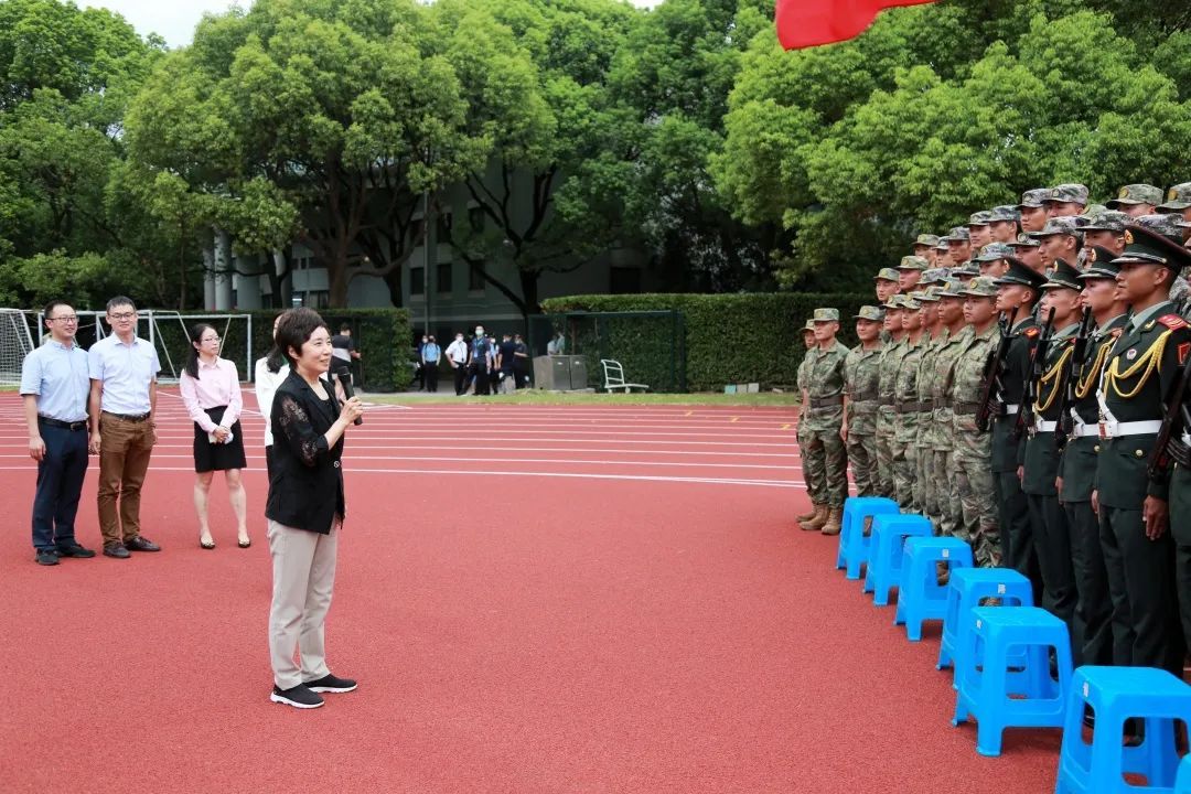 焦扬说, “军训是一场优质的大思政课,军训场就是大思政课最好的课堂。各位教官是我们大思政课最好的教师,军训的内容是我们大思政课最好的教材。”她感谢承训教官为复旦学子上了一堂大思政课,让同学们受益终生。焦扬欢迎承训教官常来复旦,加深军民鱼水情,也祝愿教官们的军旅生涯再创辉煌。