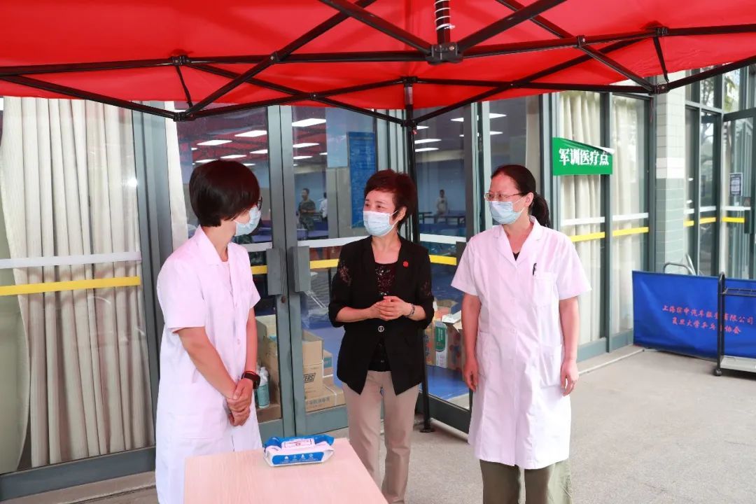 焦扬对辅导员们在军训期间的辛勤付出表示感谢,“你们的指导工作到位,军功章上也有你们,给你们点赞”。随后,焦扬一行前往军训医疗点慰问校医院医生,对他们全力配合、保障学生安全表示衷心感谢。
