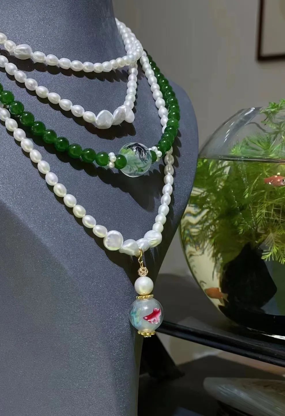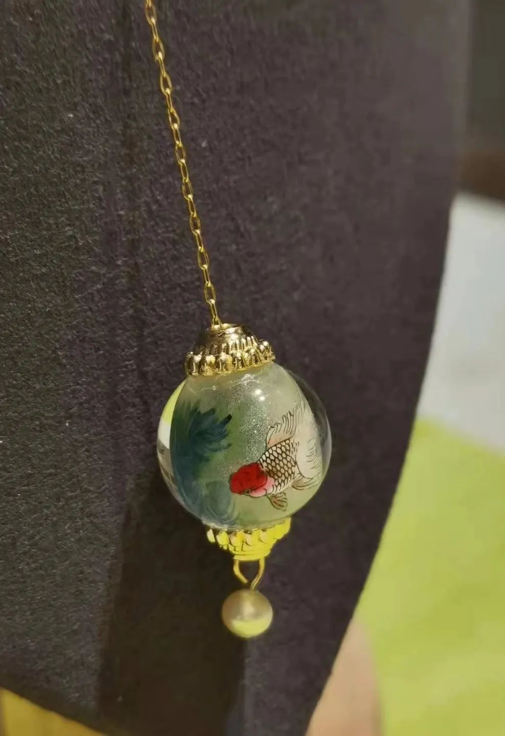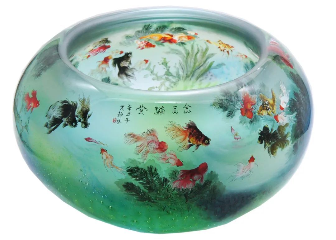 “传统的内画载体就是小小的鼻烟壶,但我很想把金鱼灵动的感觉表达地更完美一些,也想让鲁派内画传播的更广一些,因此我和我丈夫一直在尝试创新内画的载体。”