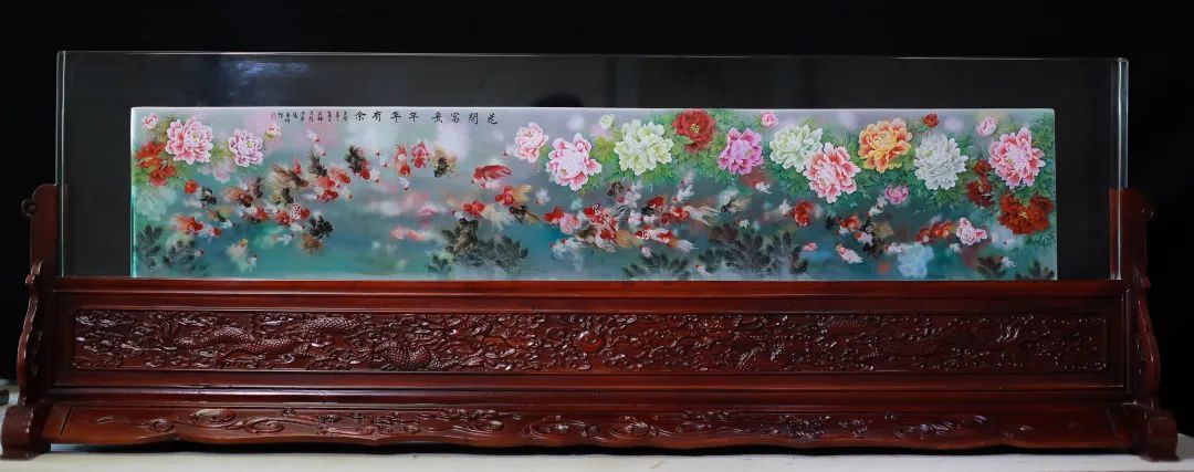 致敬鲁派内画传承百年的内画屏风《花开富贵 年年有余》就是文静在探索中完成的一件经典作品。