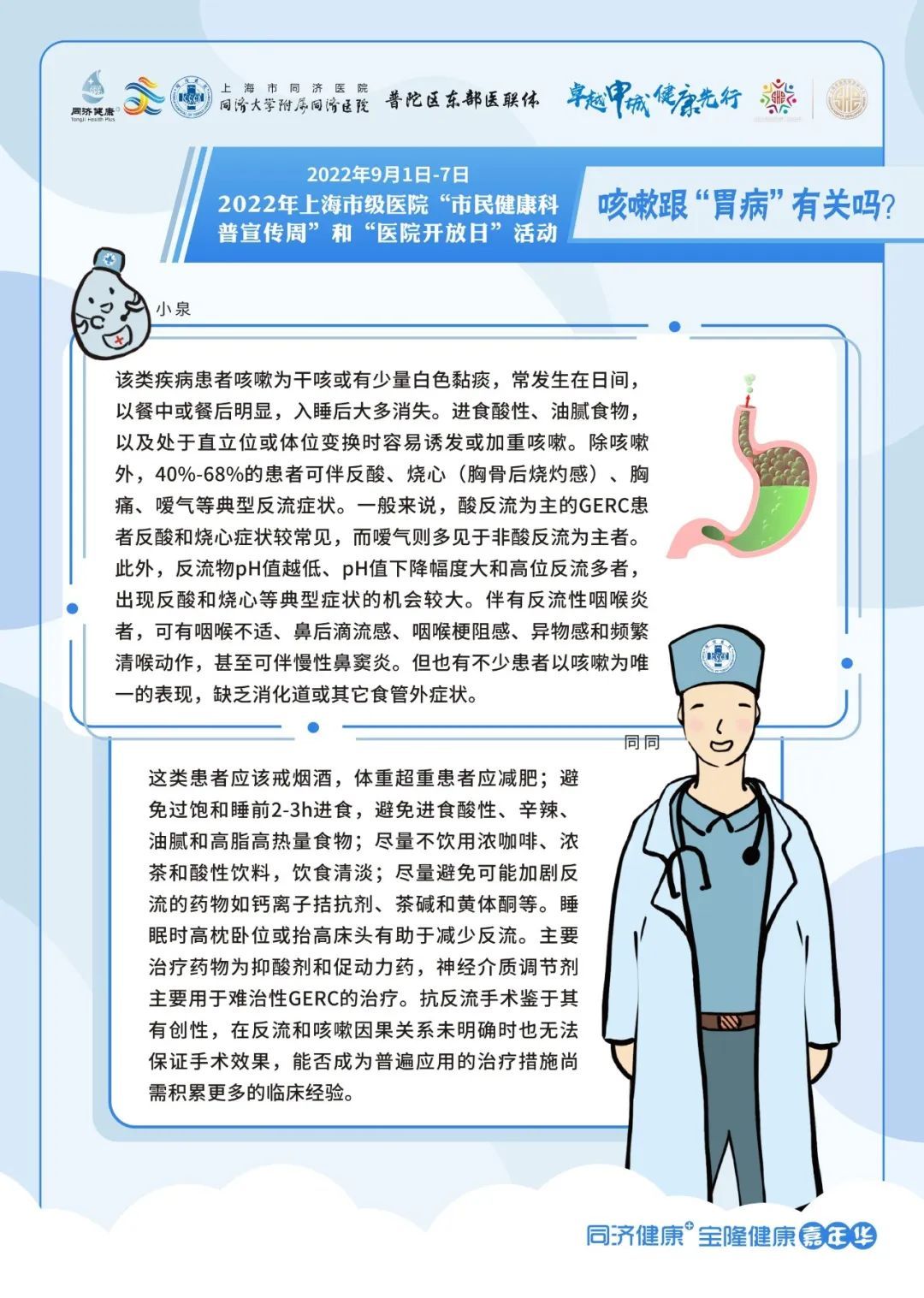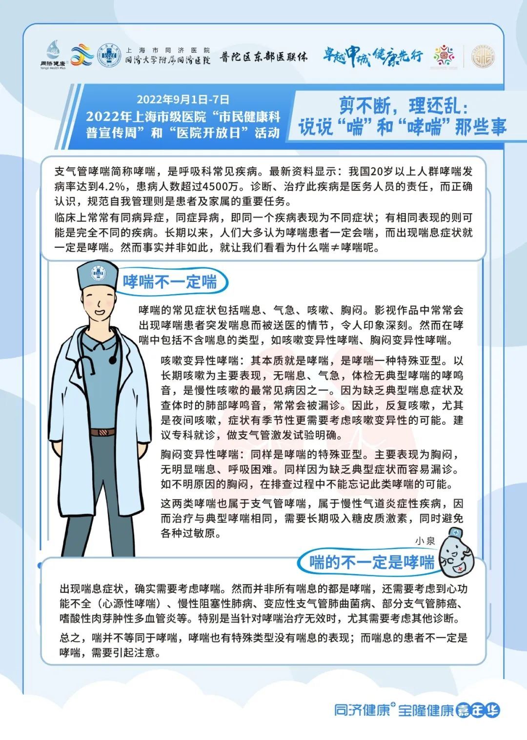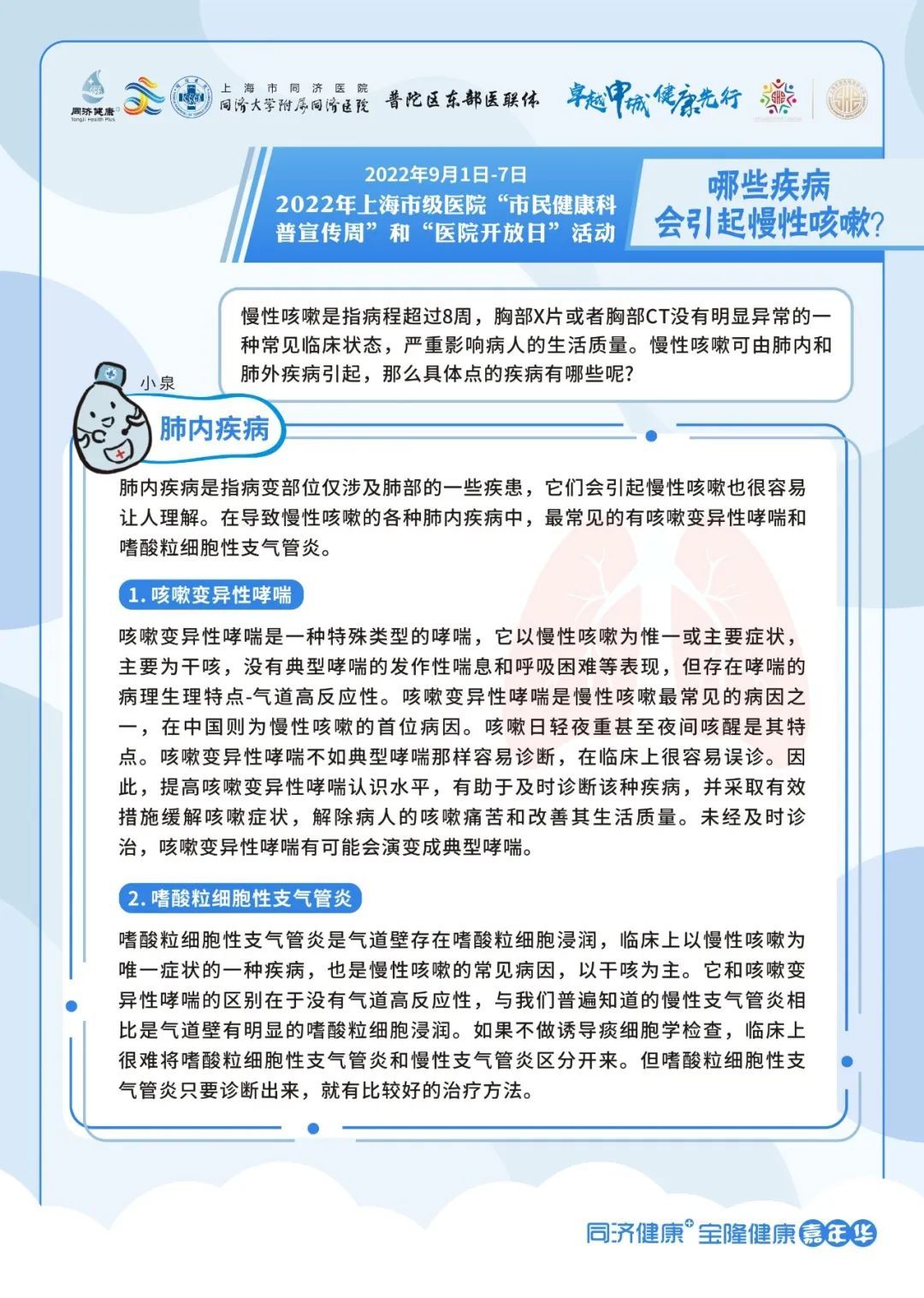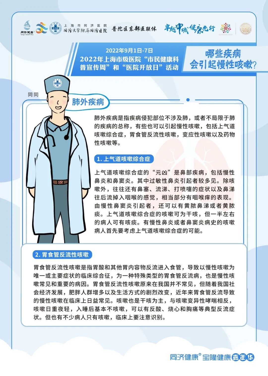 2022年9月3日上午09:00,上海市同济医院呼吸与危重症医学科&老年医学科在线上联合开展专家科普活动,向大家介绍哪些疾病会引起慢性咳嗽,说说“喘”和“哮喘”那些事,咳嗽与胃病有关吗,世上真有假心脏病吗,说说便秘那些事与千金难买老来瘦。
