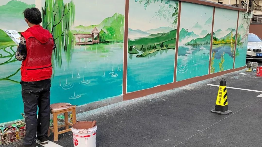 仙城小区是建于20世纪90年代的售后公房,隶属仙二居委会管辖下的一个居民小区,经过岁月的冲刷,部分墙体已经老旧剥落。自去年开展精品小区改造工程以来,为解决与群众利益密切相关的难点热点问题,仙二居委会对小区环境、庭院进行大力提升,同时提出美化小区公共区域的规划。在充分征求居民们的意见后,得到了大家的积极支持。“插画师打算什么时候开始画,我把停在墙边的车挪开,这样你们好上手。”得益于居民们的高度配合和居委会工作人员的高效工作,从确定图案到完成所有墙绘只花了一个月不到的时间。