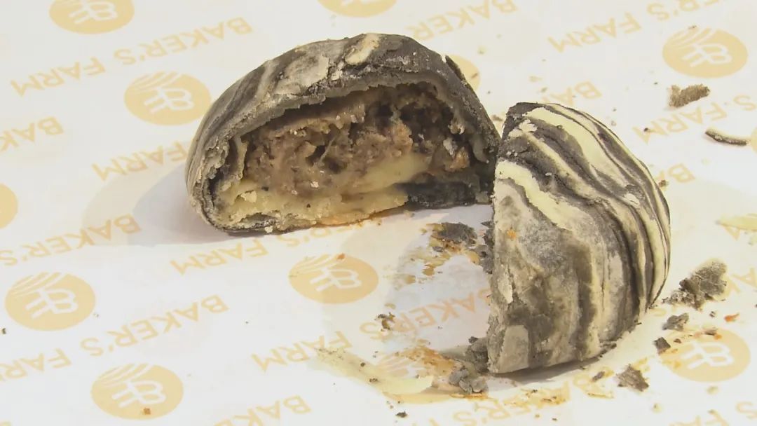 “黑松露芝士牛肉本来是西餐中的传统搭配,然后因为齐白石老先生也画过牛,并且黑松露也被称为‘猪拱菌’,正好与《溪水小桥》中的猪相呼应,所以我们尝试把这款偏西式的馅料包进了中式月饼里。”