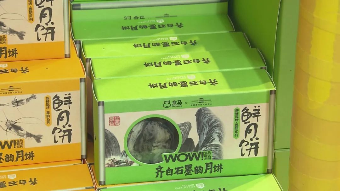 走进盒马鲜生门店,就能看到这款中国美术馆文创中心与盒马烘焙联名的“齐白石墨韵月饼”,饼皮上的纹路像极了国画大师齐白石笔下的山峦,且每个月饼的条纹各不相同,如水墨画般“不拘一格”。