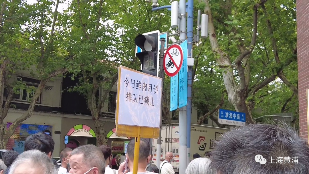 中秋临近,光明邨五个锅子齐开,也抵挡不住排队的热情,有的还带着小板凳而来,一路排到“POPEYES”,店家已经估算出当天份额,贴出“免战排”。有的市民还不买账照样排着。