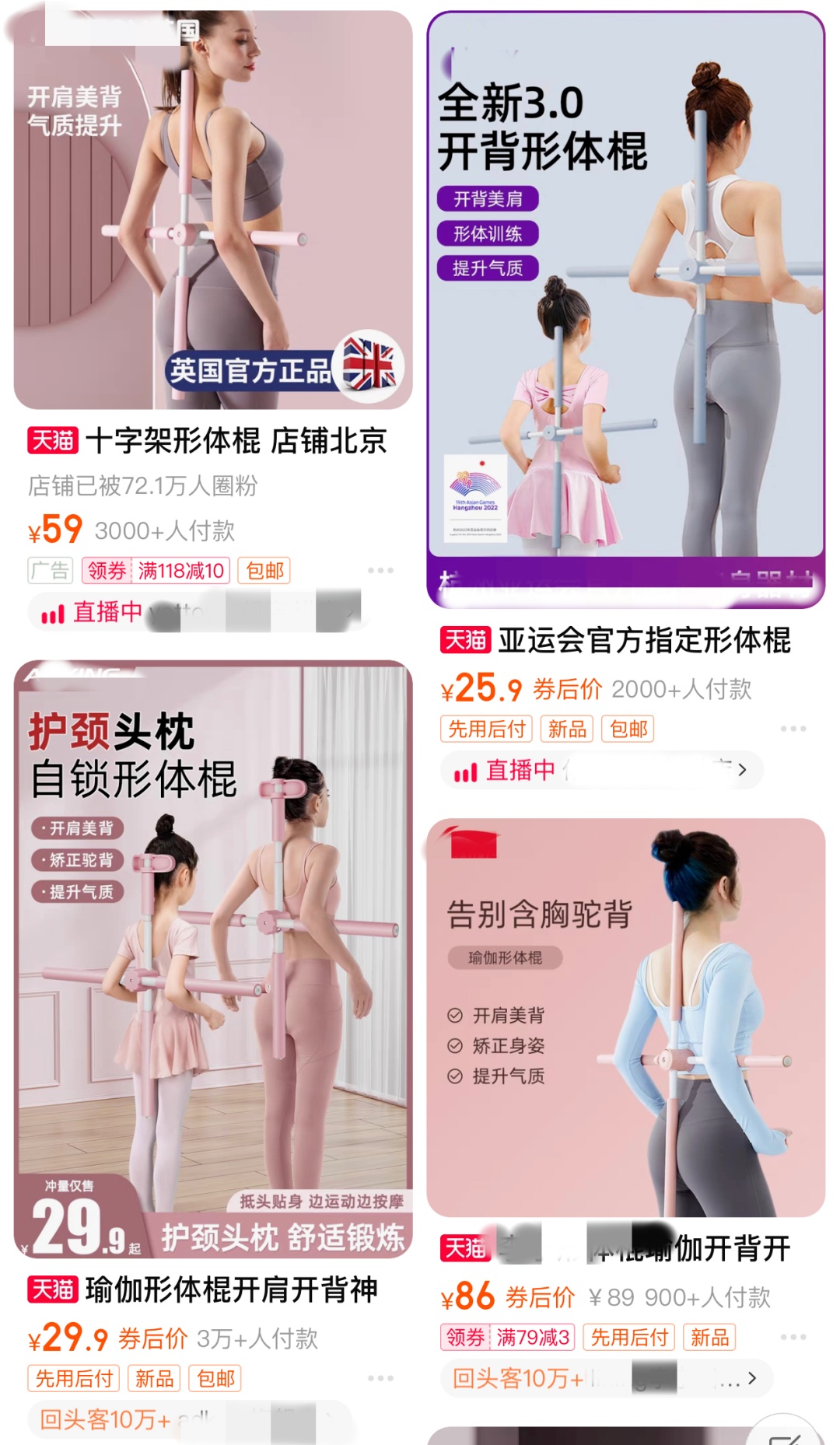 “形体老师推荐,每天十分钟,塑造优雅气质”“使用前视觉身高 165 cm ,使用后视觉身高 170 cm ”…… 在电商平台输入“十字棍”“形体棍”等关键词,就会跳出数十个相似的十字形交叉矫正器。该类商品售价多在十几元至三四十元不等,有的产品月销量已超过 10 万件。