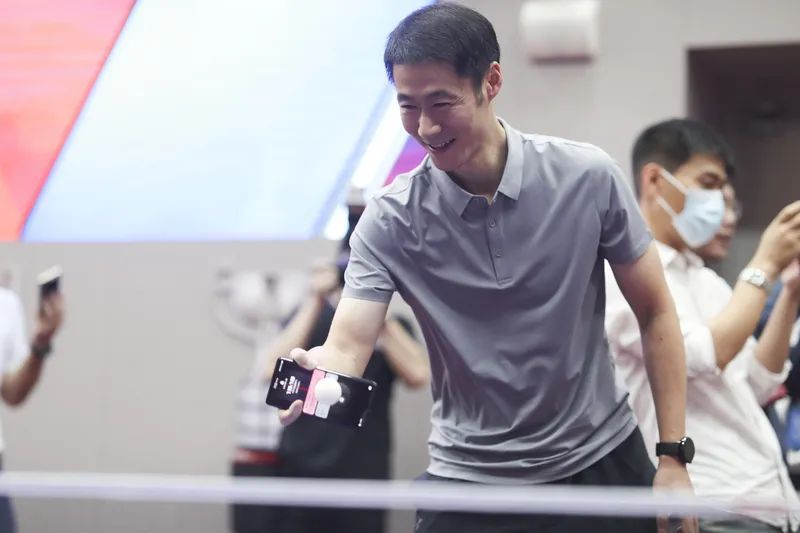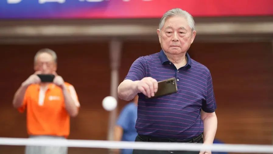 比赛现场,国际乒联终身名誉主席徐寅生和奥运冠军、上海市竞技体育训练管理中心主任王励勤,兴致勃勃地拿起手机切磋起来。两人都曾久经沙场,但打起手机乒乓球却是“新手”,你来我往,力量和旋转的控制都发生了变化,也让他们乐在其中。