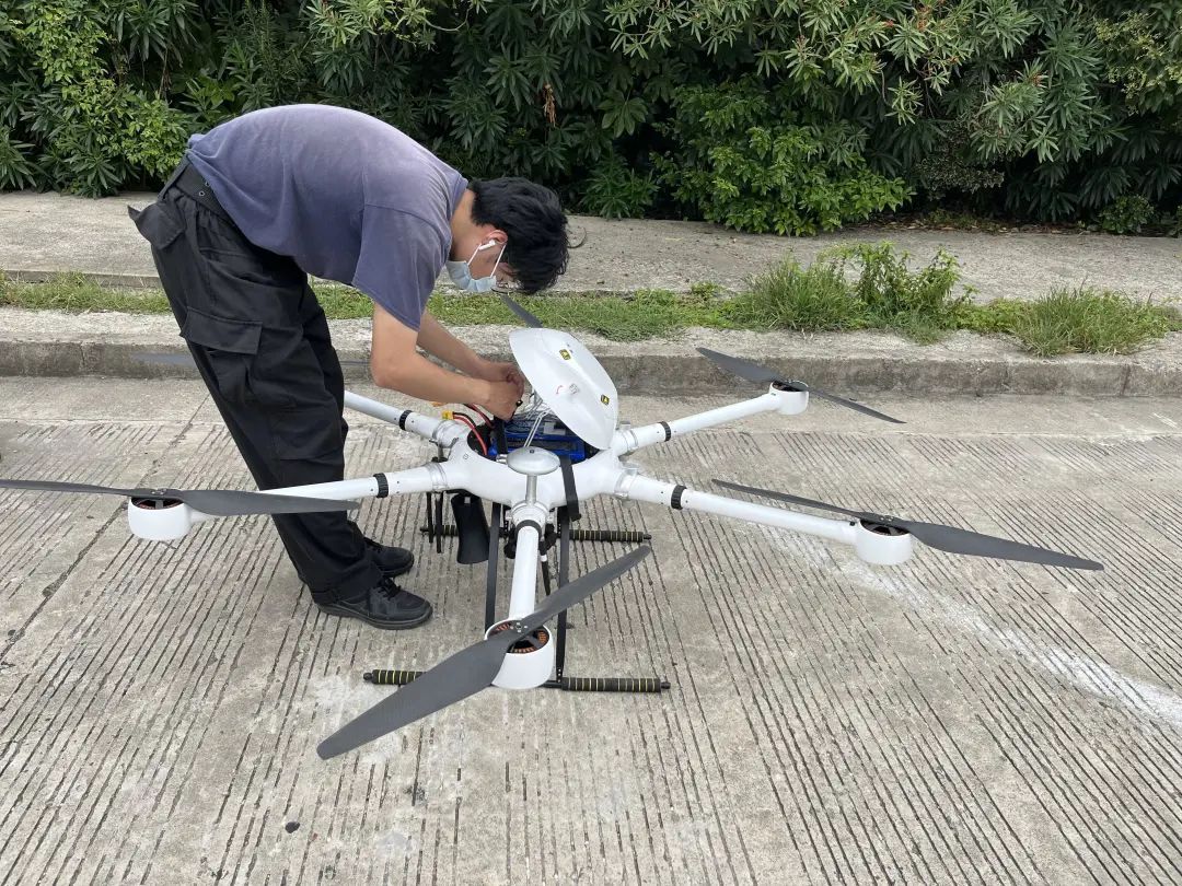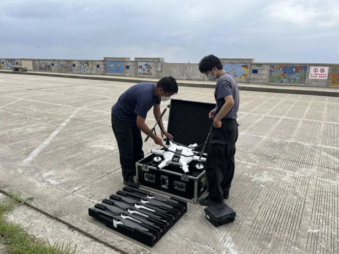 9月2日,在奉贤海湾旅游区渔人码头,无人机飞手董国丰和民警确认巡逻路线后,从保护箱中取出了设备,在他的操作下,无人机打开高音喇叭,迅速升空,开始对渔人码头区域进行巡视喊话。