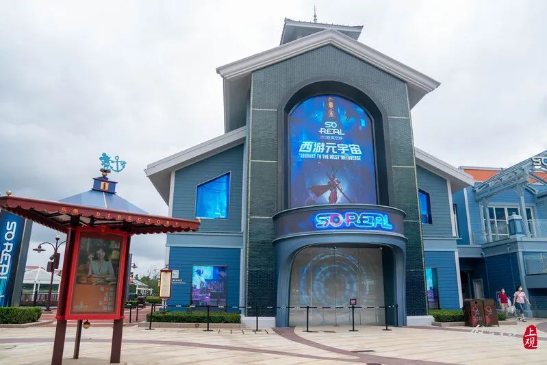 两层高的场馆以《西游记》为主题,一层设置了诸多不同类型的沉浸式VR体验项目,二层的“齐天大圣超影空间”则是SoReal为迪士尼小镇游客独家打造的全景行浸式光影体验。