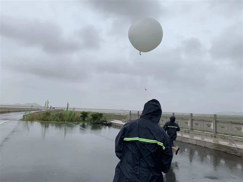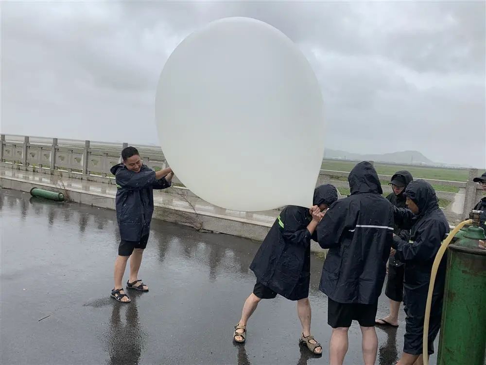 △上海台风所科研工作者正在释放臭氧探空气球。
