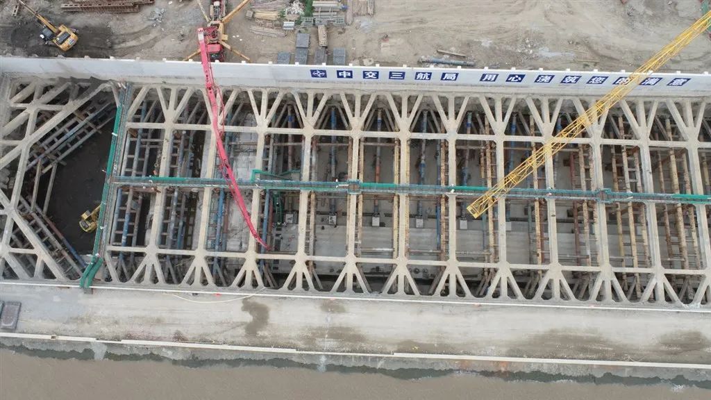 据了解,超深、超期服役基坑的复杂施工环境给基坑底板的浇筑工作带来了极大挑战。为此,施工方始终把坞口安全放在首位,持续优化施工方案和施工配置,对底板采用整体分层、分块浇筑工艺,合理划分浇筑区域,先后完成了16次混凝土浇筑,累计方量约15000立方米,切实保障坞口施工的安全质量。