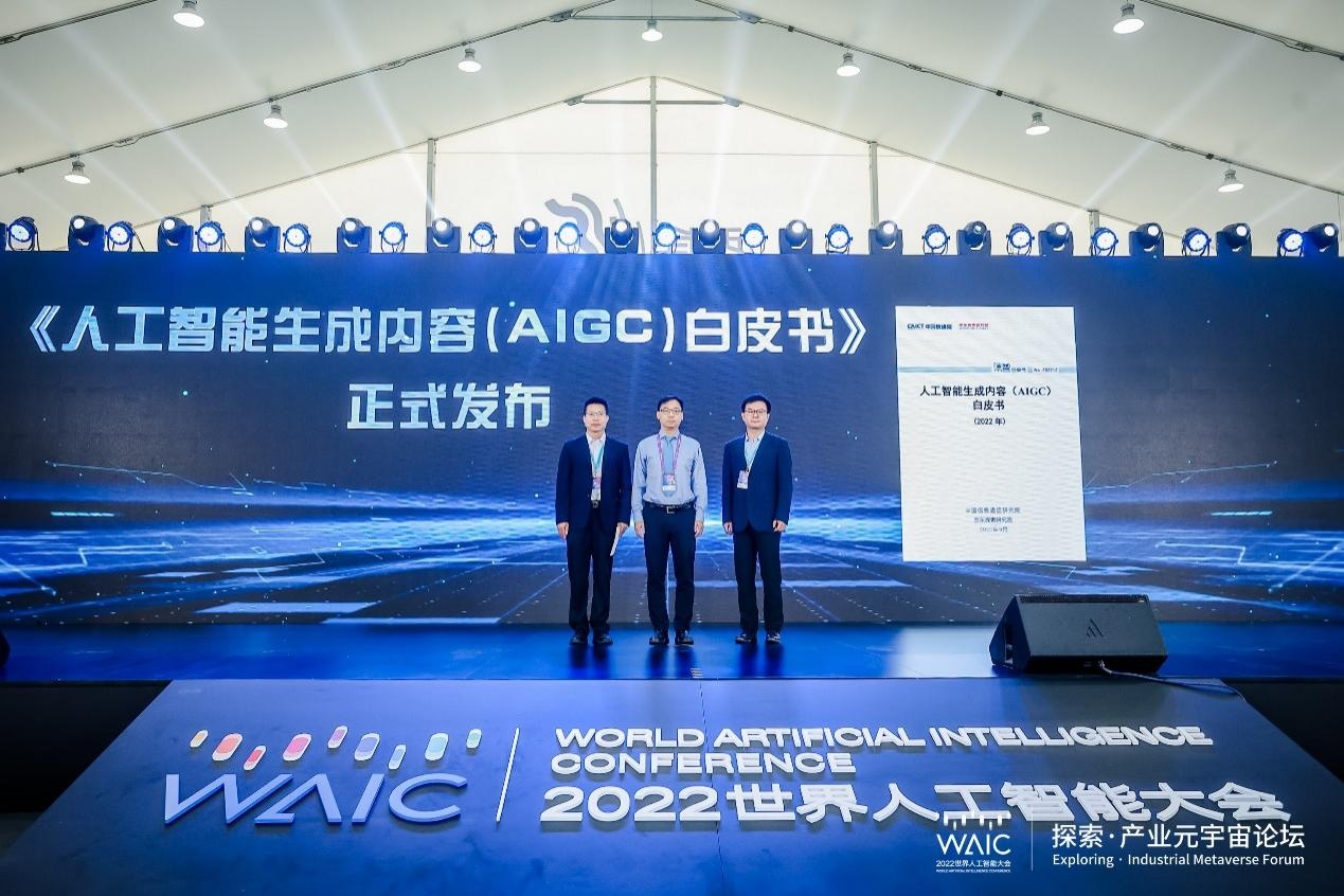 同时,由中国信通院与京东探索研究院联合撰写的《人工智能生成内容(AIGC)白皮书》正式发布。中国信通院华东分院副院长廖运发、京东探索研究院院长陶大程、中国信通院云计算与大数据研究所副总工程师王蕴韬共同启动白皮书发布仪式。白皮书从技术、应用、治理等多个维度阐释了人工智能生成内容(AIGC), 从政府、行业、企业、社会等层面,给出了人工智能生成内容(AIGC)发展和治理建议。