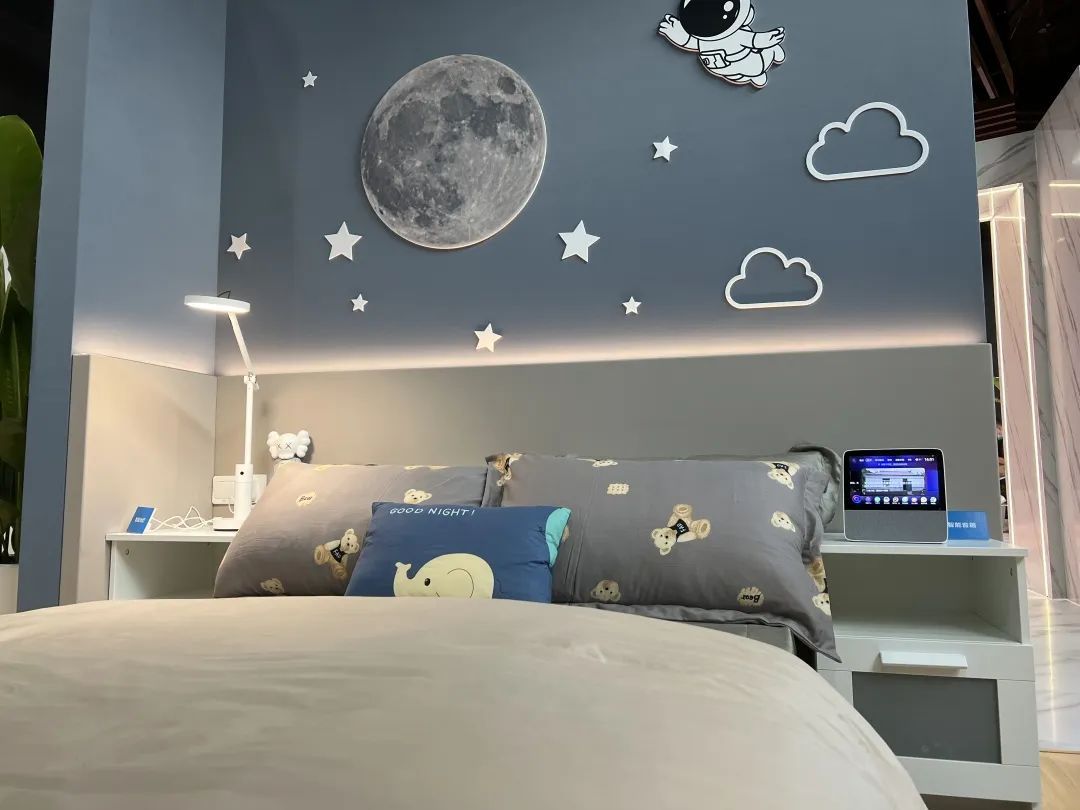 来到卧室,叫一声智能管家就可拉开窗帘,都市夜景尽现眼前。智能台灯每到夜晚,就可感应人上下床的动作,并作出开关反应。而在儿童房,安全性能被放到首位。智能插座可设定开关机时间,还可借助手机远程通断电,而桌上一张小小的电子学生证则有着更多功能。“因为许多孩子在学校里不能佩戴智能设备,为了确保他们的上下学安全,家长可以给孩子购置这张电子学生证。它上面的数字按键,可设置成一键拨号,方便孩子拨打家长的电话。它还有交通卡的功能,还内置离线健康码,方便孩子乘坐公共交通。”上海移动工作人员许敏慧表示,“此外,如果家长想知道孩子的实时位置,也可启用它的定位功能。”