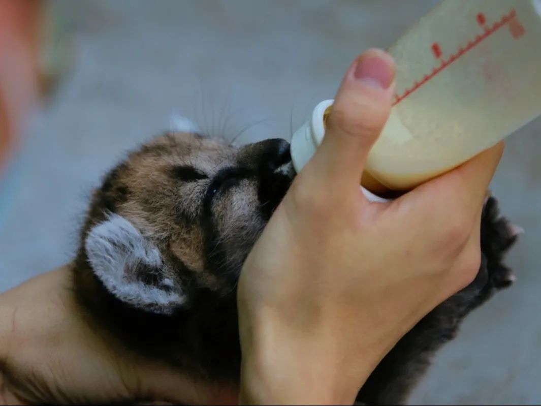 2022年6月23日,美洲狮“果果”生下了2只宝宝(兄妹俩),但可惜“果果”只照料了2只宝宝没多久,就抛弃它们,25日晚,兄妹俩被送到了哺育室。虽然是夏天,但由于缺少美洲狮妈妈的照顾,两个小家伙体温有些低。于是“奶爸”快速用温水加碘伏给它们清洗消毒并吹干,放入恒温育婴箱中,还为它们准备了热水袋。同时,美洲狮宝宝也有了两个好听的名字“枫糖”、“奶糖”,开始了和“奶爸”一起的生活。