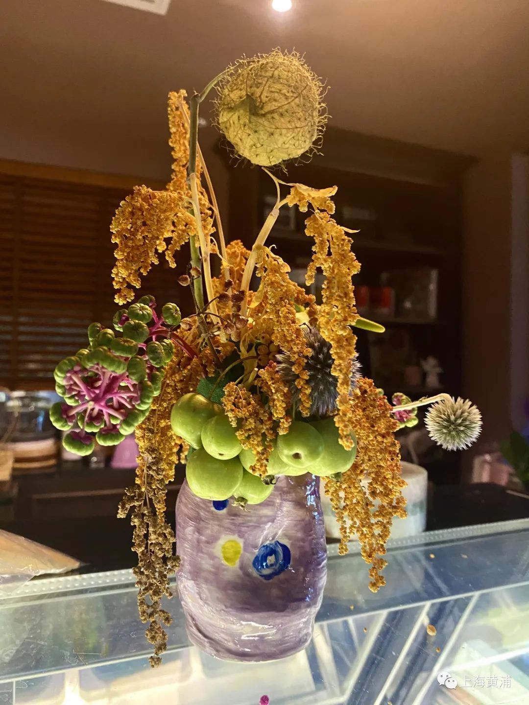 在这个金色的季节里,插花不一定要用到花,各种植物果实组合在一起也是异常应景,更多了收获的气息,充满秋色的插花,你喜欢吗?