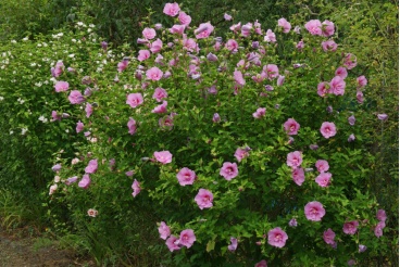 盛夏8、9月为木槿花极盛之时,开的十分灿烂, 8、9月,至10月虽已到花期之末,但仍可零星看见几朵挂在枝头。所以当有人问起夏末秋初的观花植物,木槿是极佳的选择。韩国也将其作为国花,称之为无穷花。
