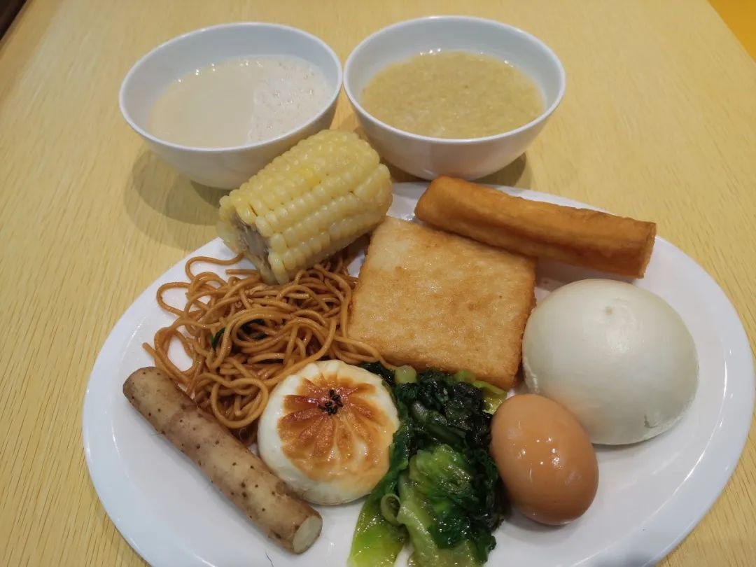 食堂早餐品类丰盛,价格也相当亲民。豆花4元、炒面8元、油条2元、粢饭糕2元、猪肉包3元、白煮蛋2元等,基本花上七八元就可以搭配出一套“简单版”早餐。