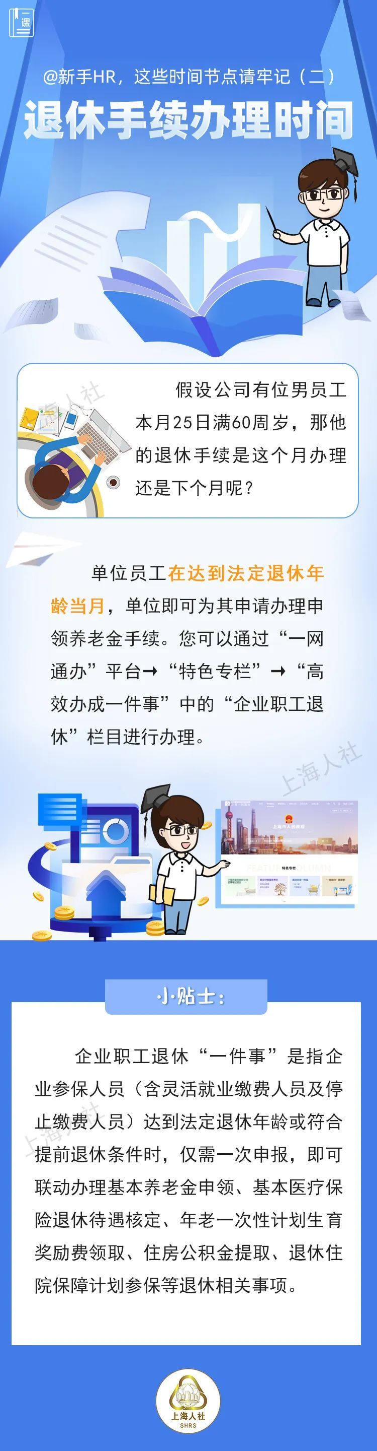 小罗今年大学毕业后,通过校园招聘入职到一家化妆品公司,成为储备干部。最近小罗在HR部门轮岗,人事主管让小罗帮忙给几个快退休的员工办理退休手续,小罗有些疑问,当月退休的员工是当月办理还是次月办理呢?关于这个时间节点,今天请仁仁博士来解答。