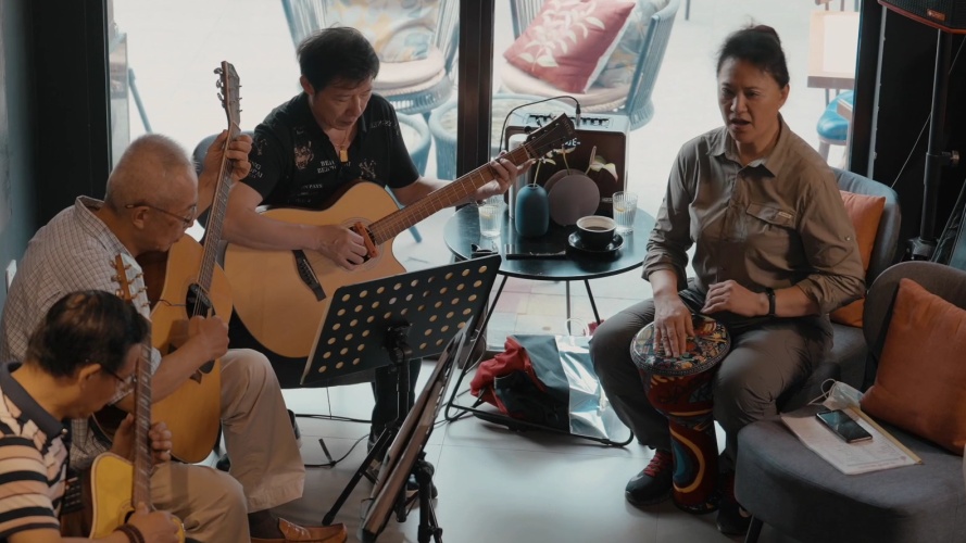 几乎每个周末,店里的固定区域都会撤开咖啡桌、围出小舞台,等待青少年儿童合唱团、盲人合唱团或是来自社区的老年人乐队表演。这里有老年人也有青年人,甚至还有孩童,站在这个平台上的每一个生命都很美好,每一个人也都有渴望被看见的需求。