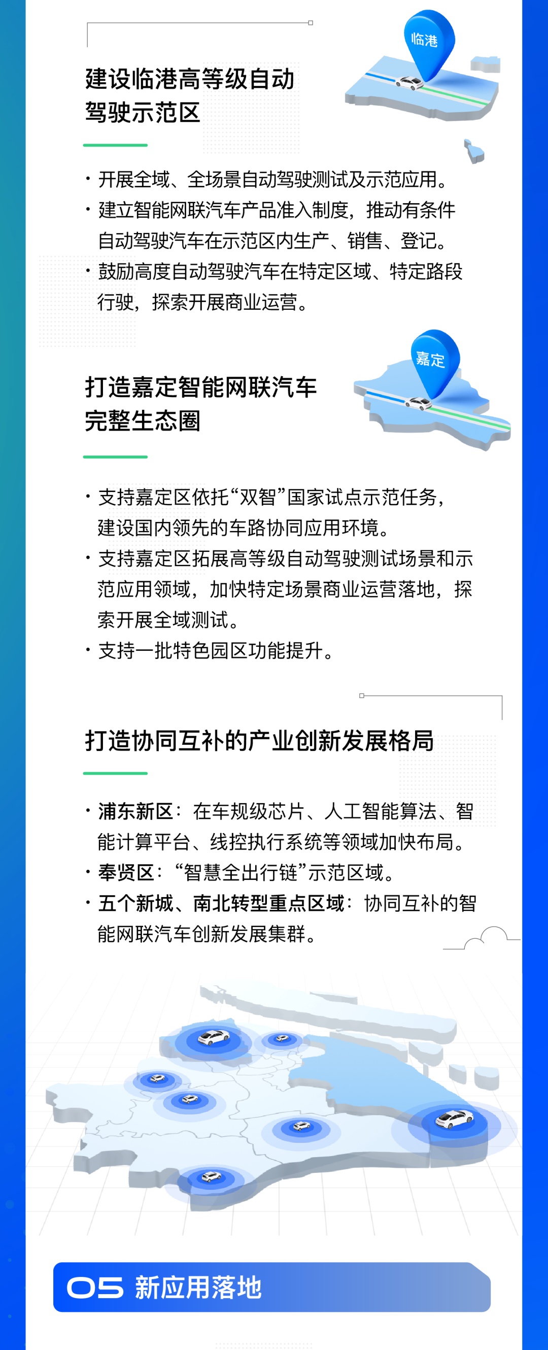 《方案》指出,目标到2025年,上海市智能网联汽车大规模、多场景、高等级、多车型应用初具规模,智慧交通生态加速融合;智慧道路基础设施实现重点区域覆盖,基本满足车路协同、智慧交通和智慧出行应用需求;规则、标准和监管体系实现突破优化,基本建成系统完善的智能网联汽车管理体系。《方案》明确提出新技术突破、新终端布局、新生态培育、新空间格局、新应用落地、新基建配套和新规则保障等七大重点任务,并强调要建设好智能汽车创新发展平台。