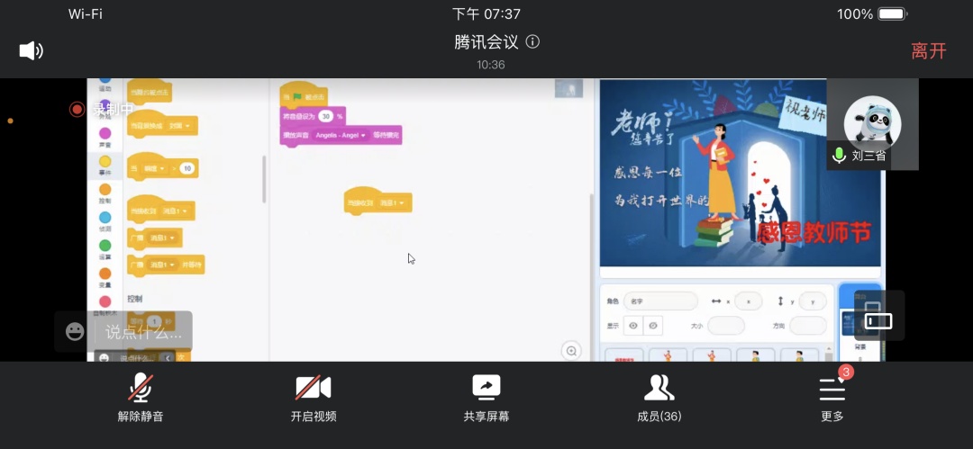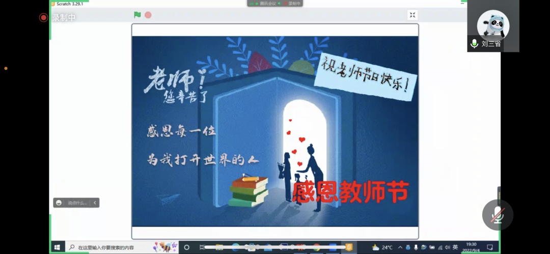 最后,小朋友们将在活动中学习到的编程变量,结合自己的想法通过电子小程序的方式,用编程语言表达出来。一个个作品的完成,是他们创造成果的展现,也是他们对老师和亲人最真挚的祝福。