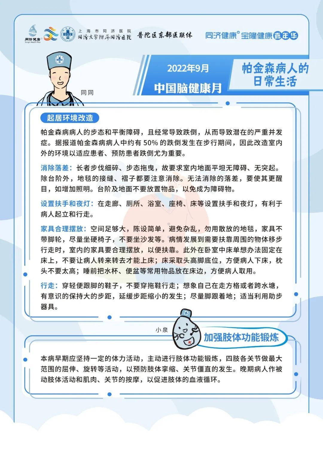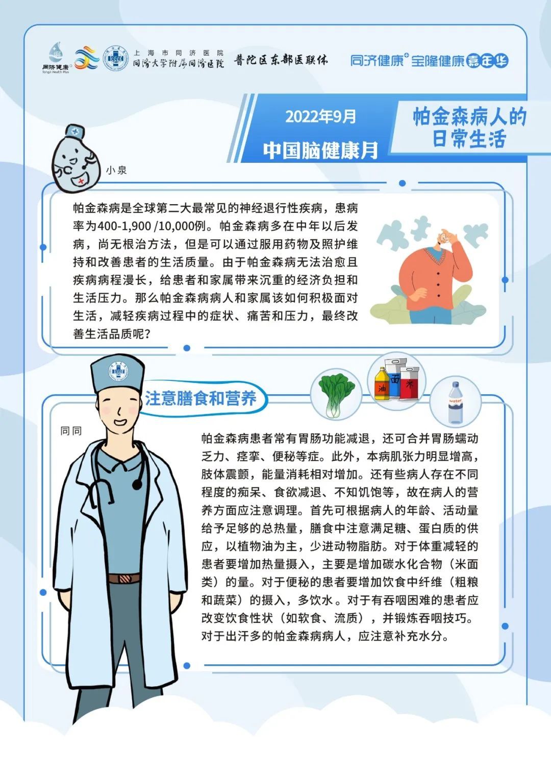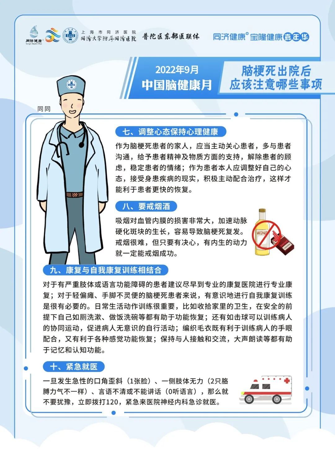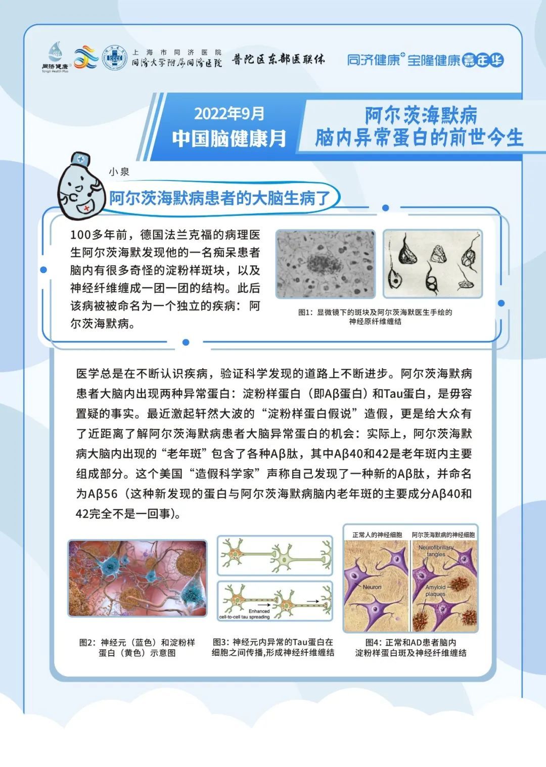 2022年9月7日上午09:00,上海市同济医院神经内科将在线上联合开展专家科普活动,向大家介绍脑梗死出院后的事项、帕金森病人的日常生活、阿尔茨海默病患者大脑内的异常蛋白的前世今生与出现卒中症状后能否等待。