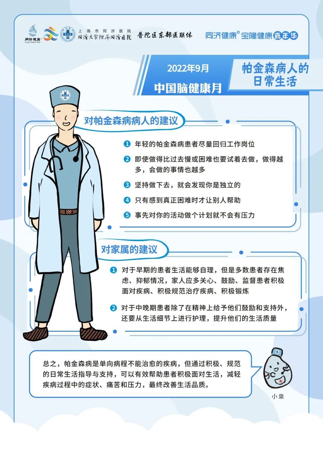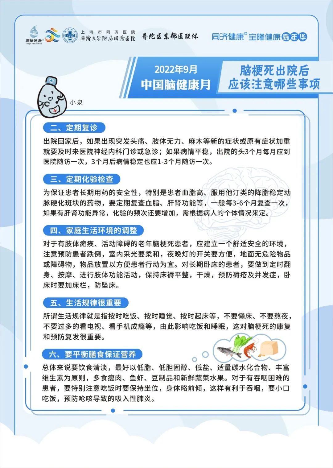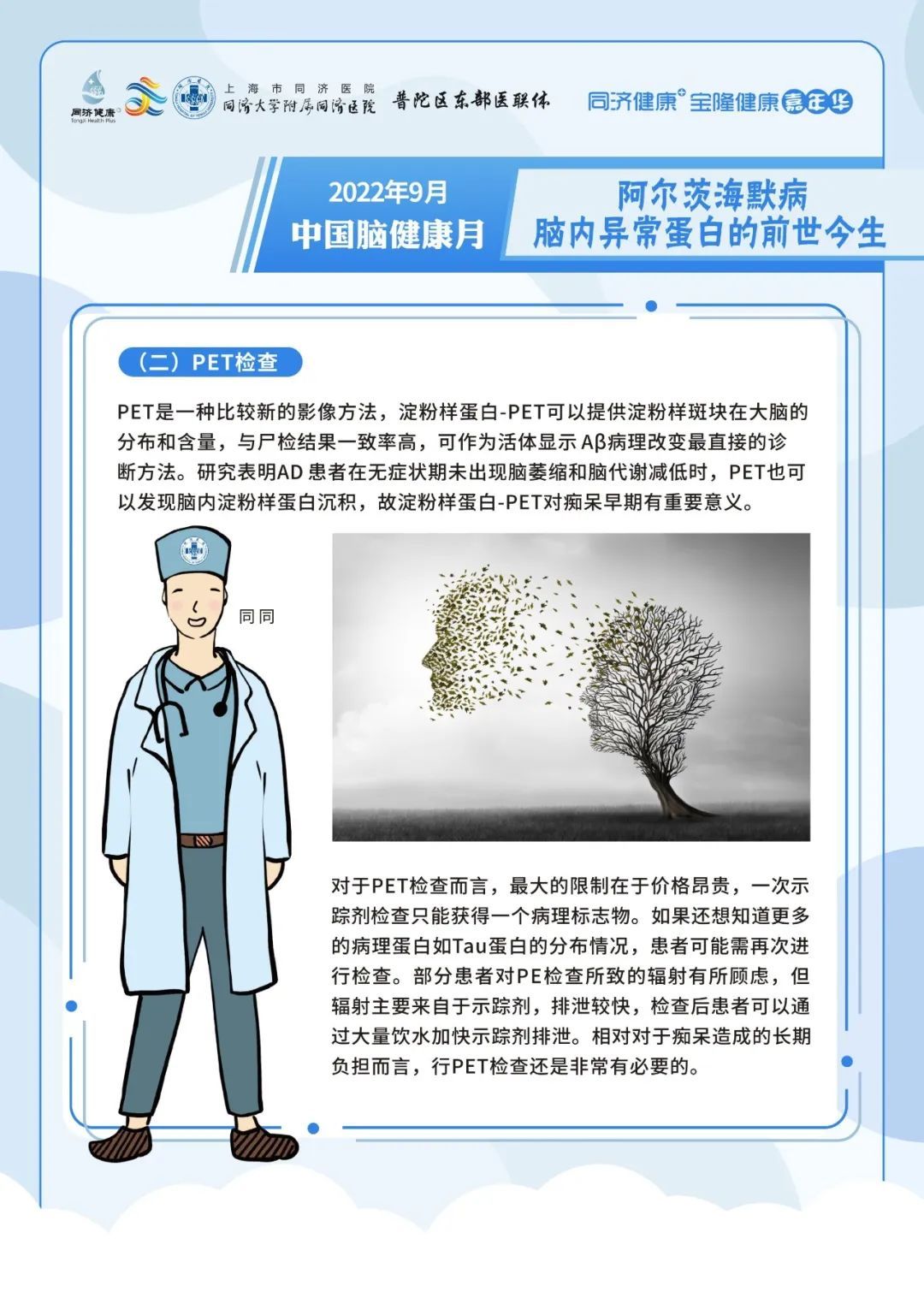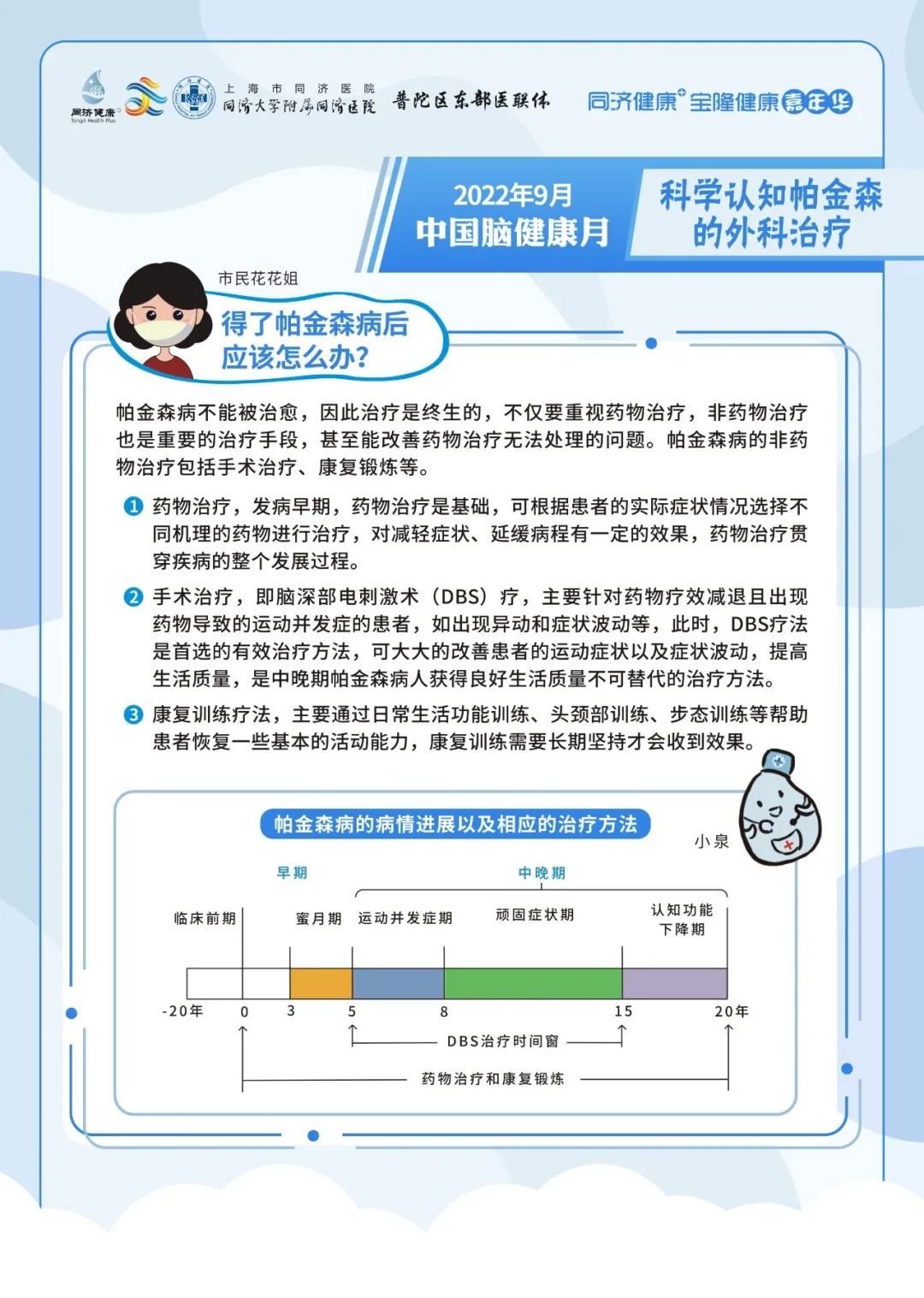 2022年9月7日上午09:00,上海市同济医院神经内科将在线上联合开展专家科普活动,向大家介绍脑梗死出院后的事项、帕金森病人的日常生活、阿尔茨海默病患者大脑内的异常蛋白的前世今生与出现卒中症状后能否等待。