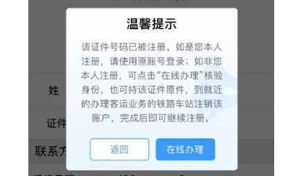 点击注册,填写相关信息,点击下一步时,会弹出温馨提示(如下图),选择“在线办理”即可通过人脸识别,注销该账户。
