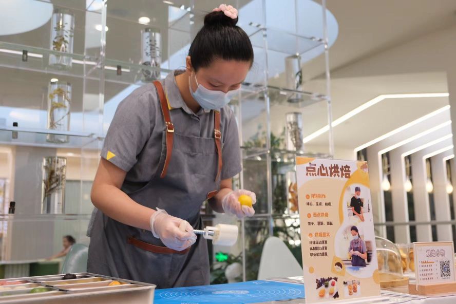 记者了解到,王相晴之前就会在家中做一些馒头、包子,这次通过一年多的系统学习训练后,已经具备了初级点心师的能力,可熟练制作曲奇饼干、瑞士卷、蛋糕等各种点心,这些点心今后也都会放在咖啡馆内进行售卖。
