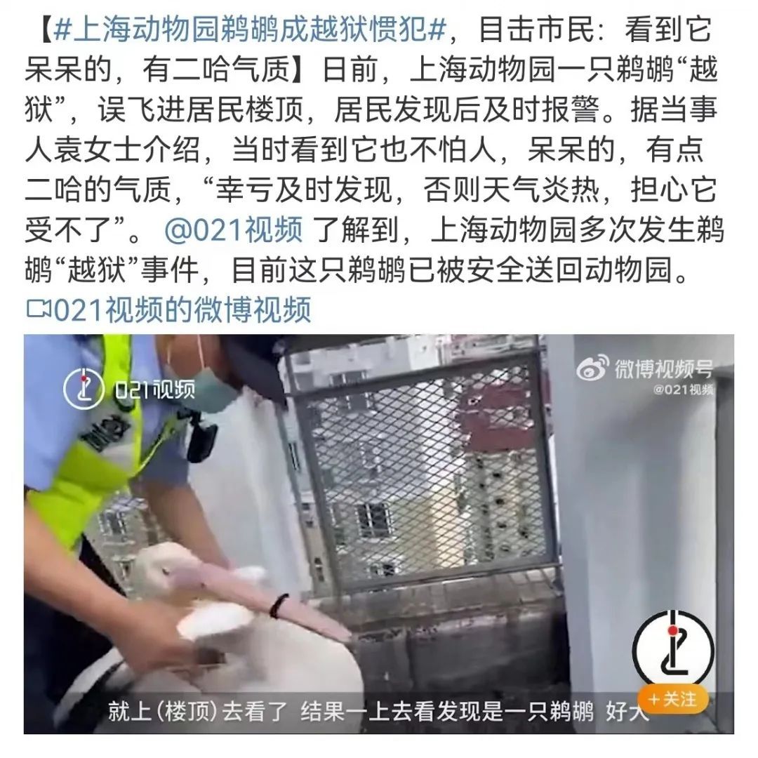 因此,绝大部分鹈鹕都会自行飞回动物园,但是也会有极少数由于地形等原因飞不回来(新闻中这只可能因为楼顶天台有较高护栏遮挡,不利起飞)。可在周边热心居民的关心下,这些“出走”的鹈鹕最终都会被居民发现,最后被相关部门“遣送”回动物园。