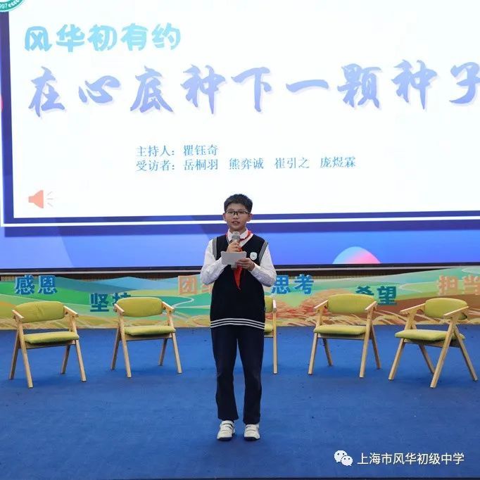 风华初的舞台上,每天都发生着精彩的成长故事。全体师生共同聆听新时代的少年心语,走进“风华初有约”。同学们结合自己的经历,与大家分享各自成长中的“关键力量”,友善、健康、自律、自主,既是对美好未来的无限希望,也是青春少年勇于担当的最美展现。