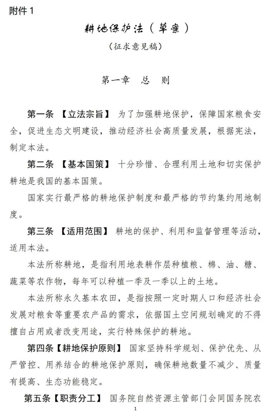 自然资源部关于《耕地保护法(草案)》(征求意见稿)公开征求意见的公告
