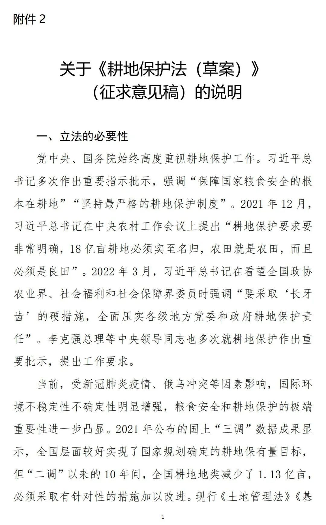 2.关于《耕地保护法(草案)》(征求意见稿)的说明
