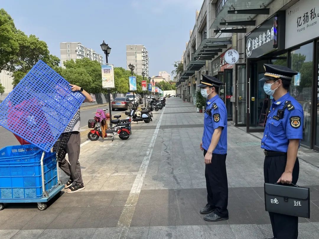 “你好!请把晾晒在外面的衣物收起来,这种行为不仅影响市容市貌,也违反了城市管理相关条例……”在仓桥村路,执法队员发现路面存在拉绳晾晒衣物、乱堆物等现象。经过执法队员的耐心劝导,各类乱象得到有效遏制,街面也变得更加整洁有序。