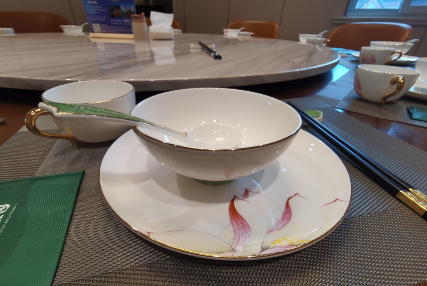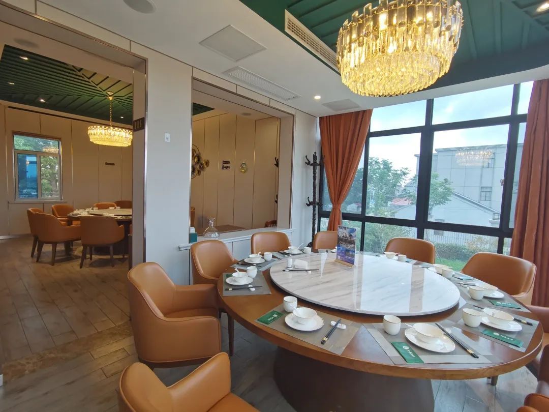 餐饮楼分为大厅和包房两层,拥有5个包房,最大的包房可以容纳20多个同时用餐。餐具都是精心设计与挑选,金丝边的瓷器碗筷,足以见民宿主人的用心良苦。
