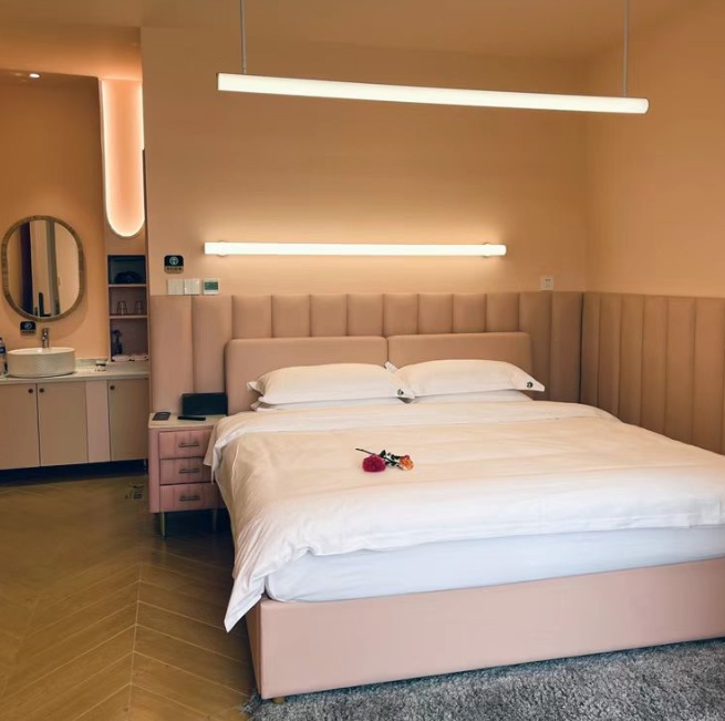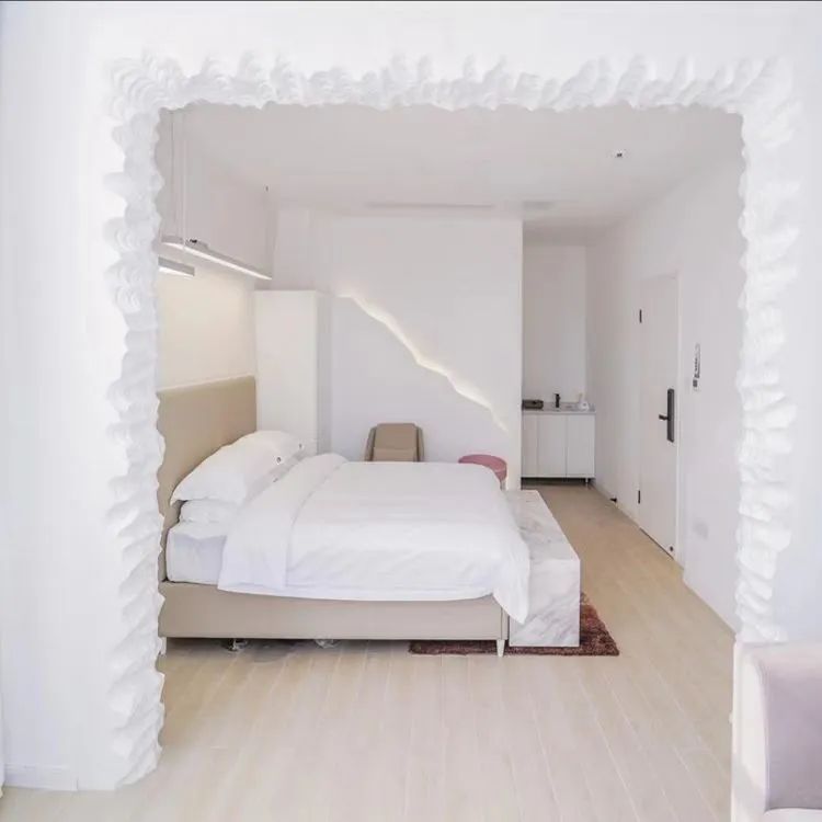 民宿还有一栋网红楼,这栋楼讲述着一个美丽的爱情故事,房间命名也颇有意境,民宿李姐告诉我们,这栋楼共四个房间,名字分别为,或、土、花、言,讲述了一对男女从恋爱到结婚的整个心路历程。房间也会有不同的颜色主题,更加能贴近入住情侣的心境。