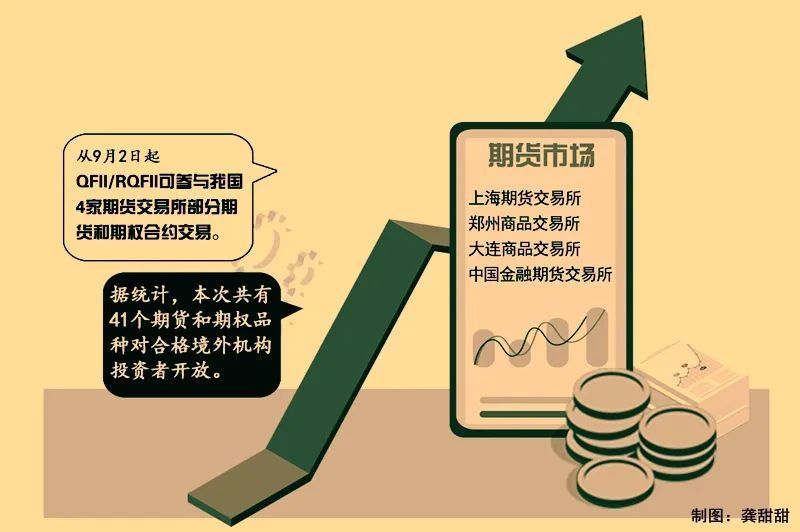 经中国证监会同意,从9月2日起,QFII/RQFII可参与我国4家期货交易所(即上海期货交易所、郑州商品交易所、大连商品交易所、中国金融期货交易所)部分期货和期权合约。据统计,本次共有41个期货和期权品种对合格境外机构投资者开放。