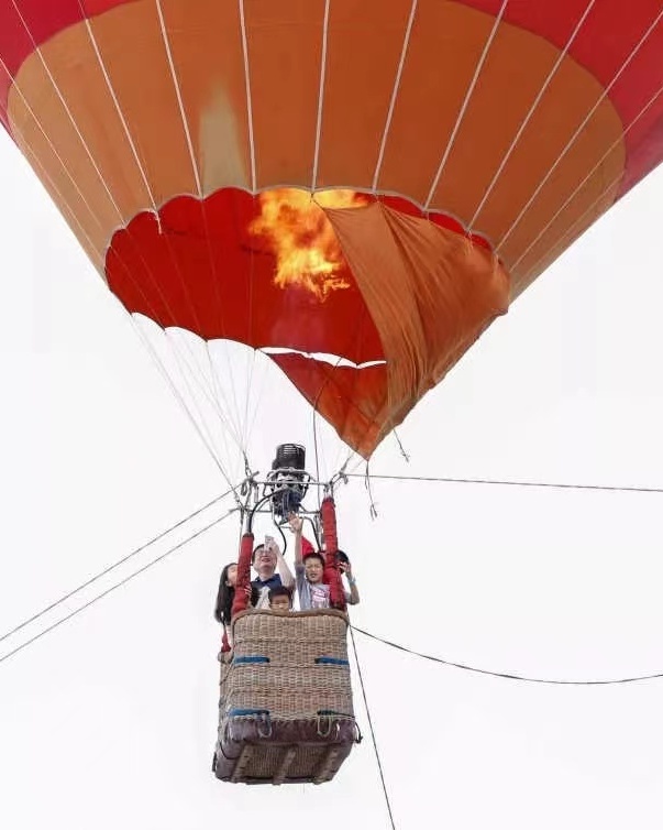 您可以来金山城市沙滩西区体验高空热气球,
