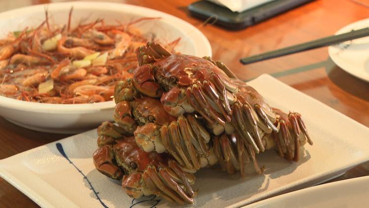 “我俩是专程来吃大闸蟹的。”大堂里一对夫妻边品尝着刚上桌的咸肉蒸螃蟹边说道,“听说今年螃蟹上市时间要晚,等不及了,刚刚还预订了几箱打算送亲戚朋友”。