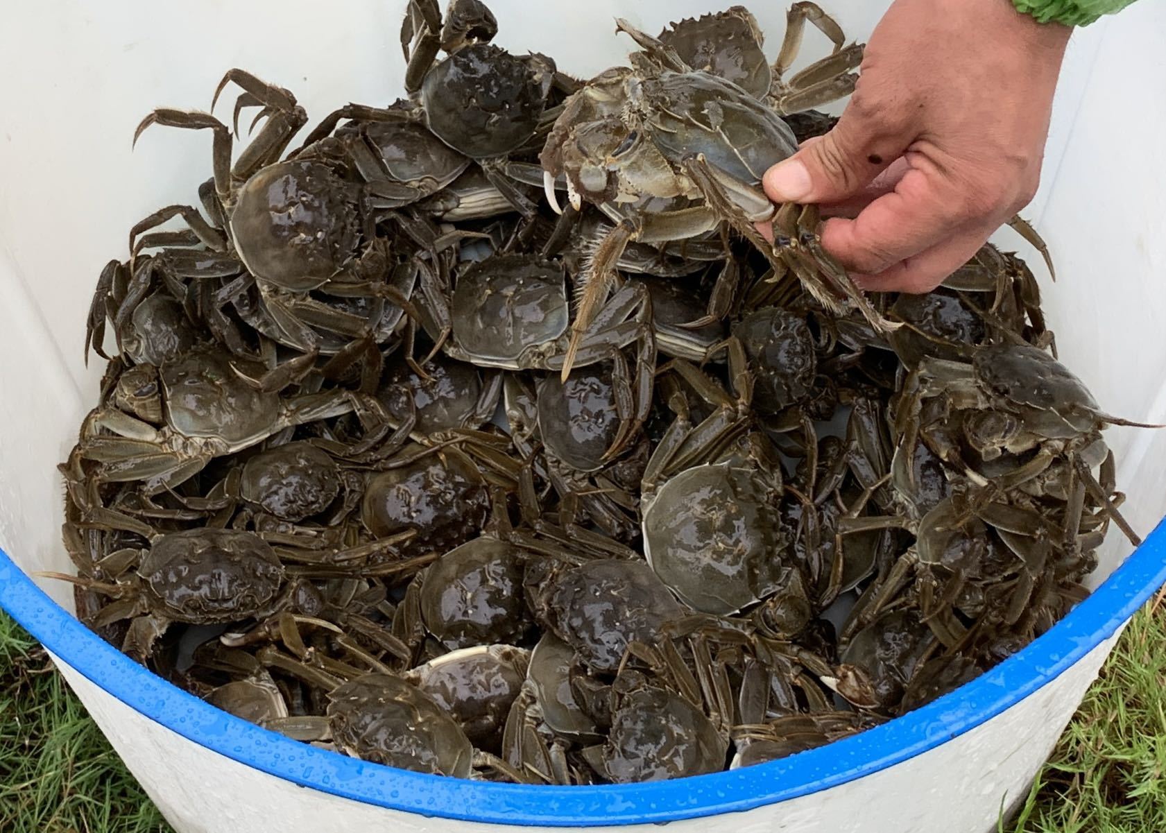 在位于小昆山镇的上海昆秀水产养殖基地,工作人员一早开始打捞水中的地笼。只见笼里爬满了手掌心大小的大闸蟹,工作人员轻扫一眼,便娴熟地从笼里挑选出已经完成5次蜕壳的成蟹。刚出水的大闸蟹就被送到与蟹塘比邻的“荡湾里蟹庄”后厨,经过精心烹饪,端到慕名而来的食客饭桌上。