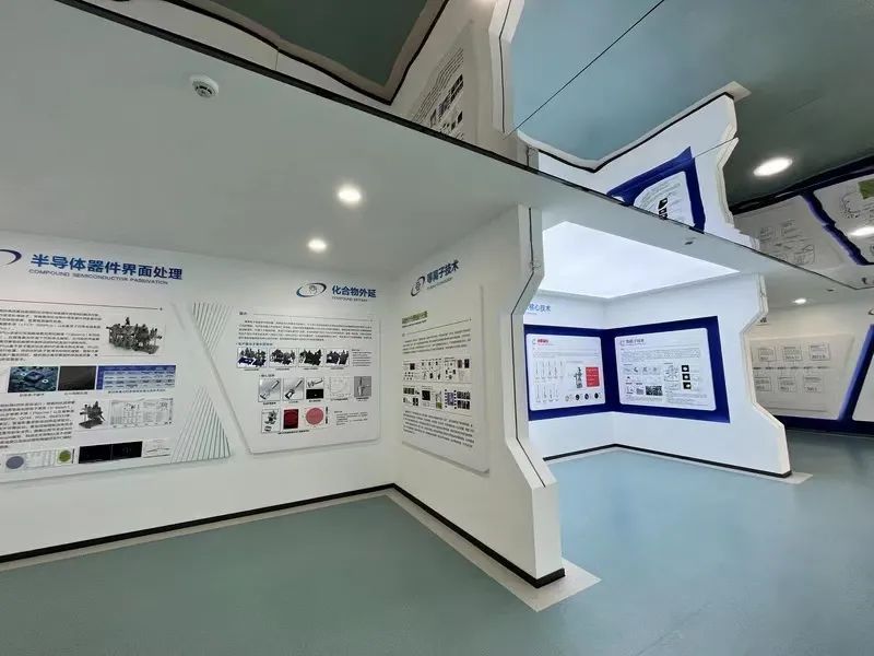 仪式开始前,陈杰一行与费勉仪器负责人观看展板,了解企业最新发展动态。