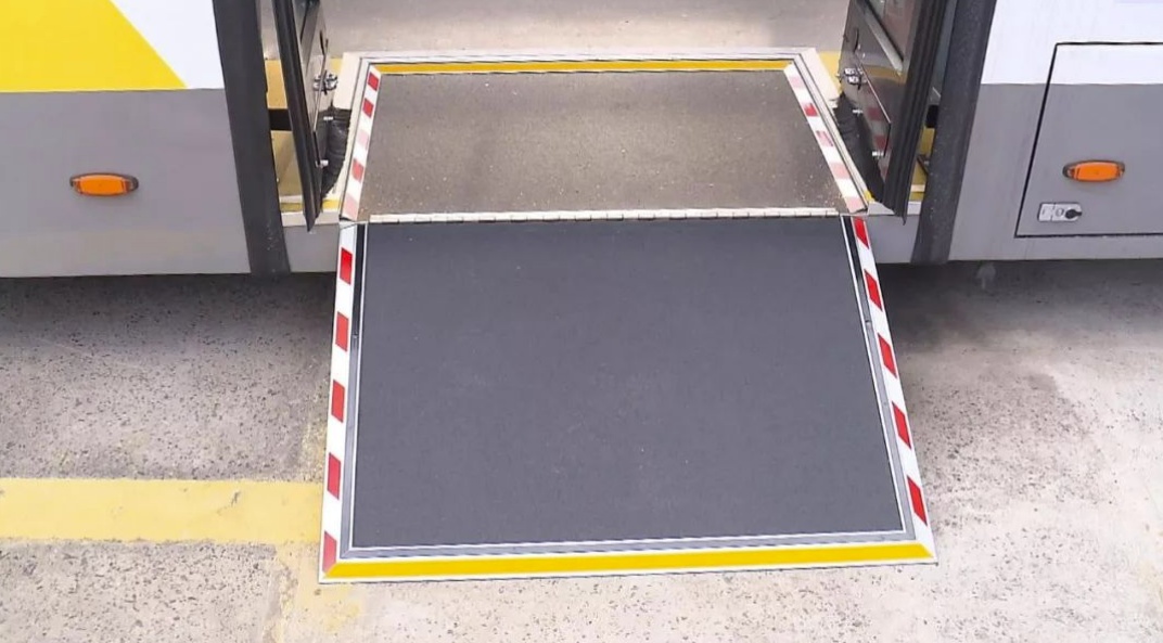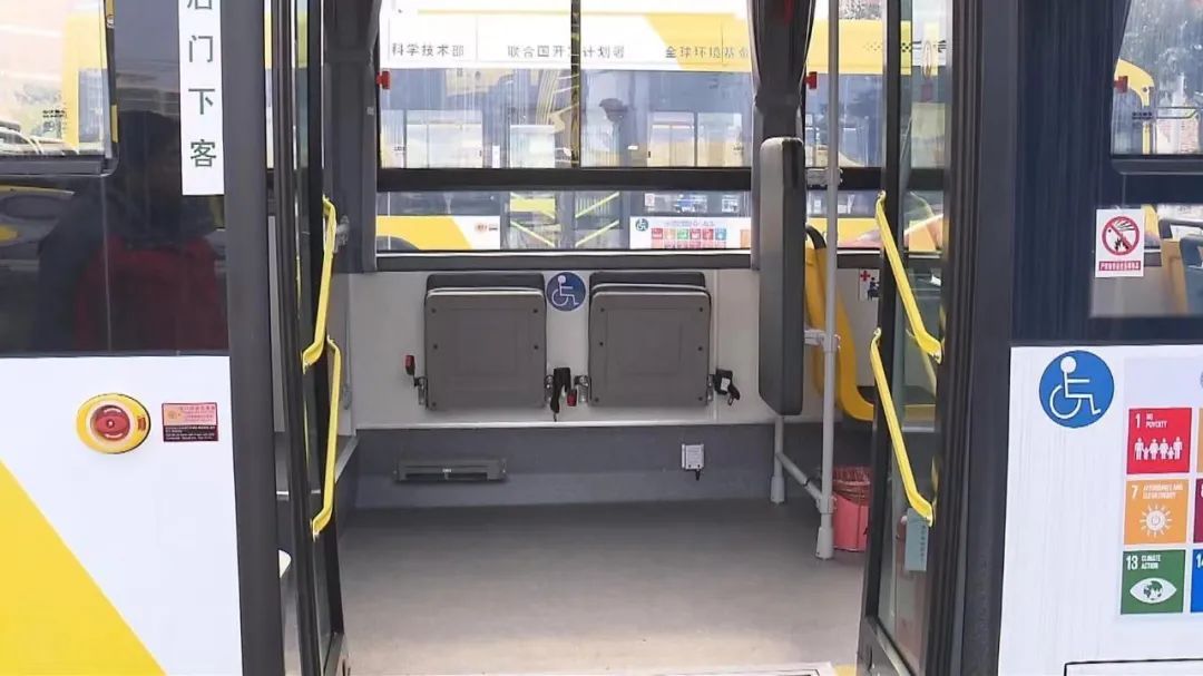 公交车还配备上下车翻板等细节装置,为不同需求的乘客提供便利↓