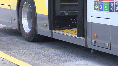 整车升降设计就是其中一项,当车辆靠站停稳后,车身会在驾驶员的操控下整体下降,方便乘客上下车↓