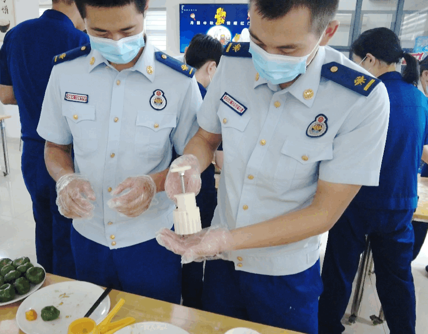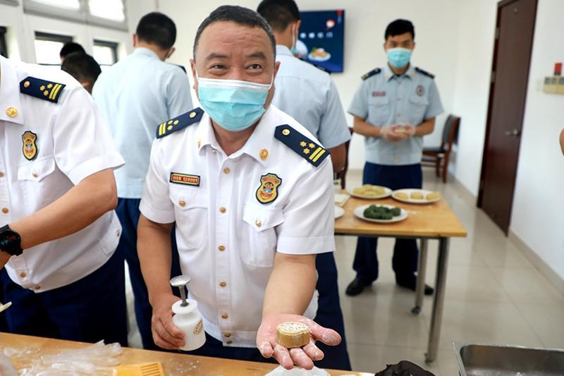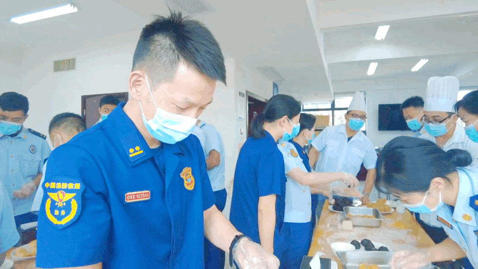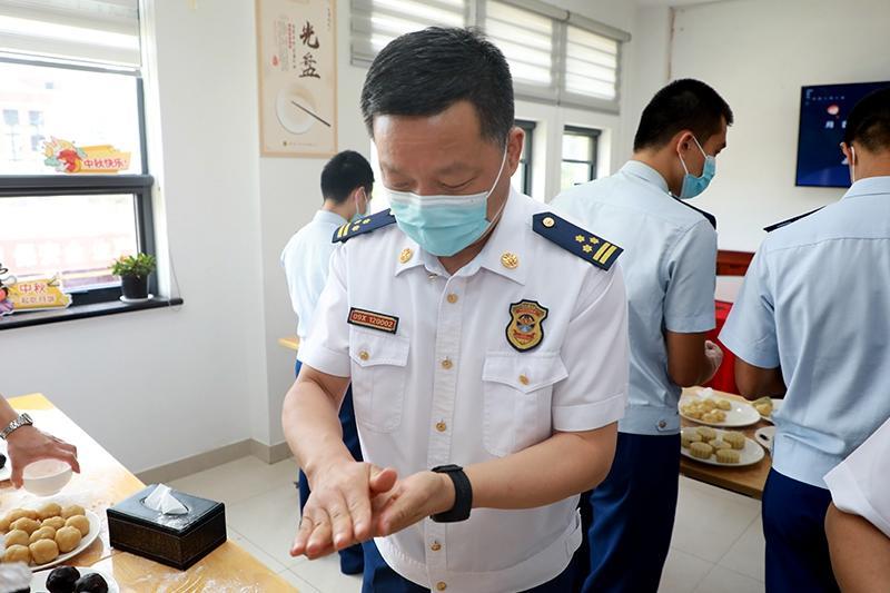 今年,黄浦消防还专门定制了消防主题的模具,做出了独家的“专属月饼”。从所需食材的准备到精细的制作过程,大家都参与其中,乐在其中,有些调皮的消防员充分发挥自己的想象力,包出创新月饼。