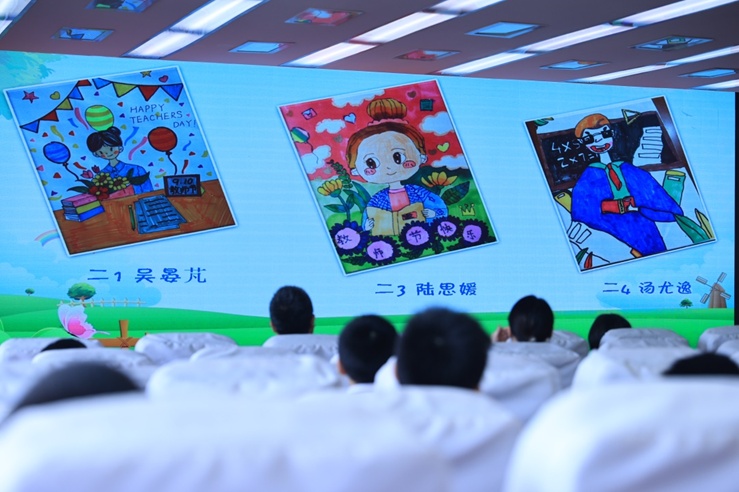 学校各年级学生纷纷行动起来,一个年级,一项活动,一句祝福:一年级学生为老师画张像;二年级学生写一句心里话;三年级学生献上一首最动听的歌;四年级学生出一面祝福板报;五年级学生制作一幅海报,学生们用彩色的画笔,真挚的话语,动听的歌声,用心的手工,为老师送上一个个惊喜问候。