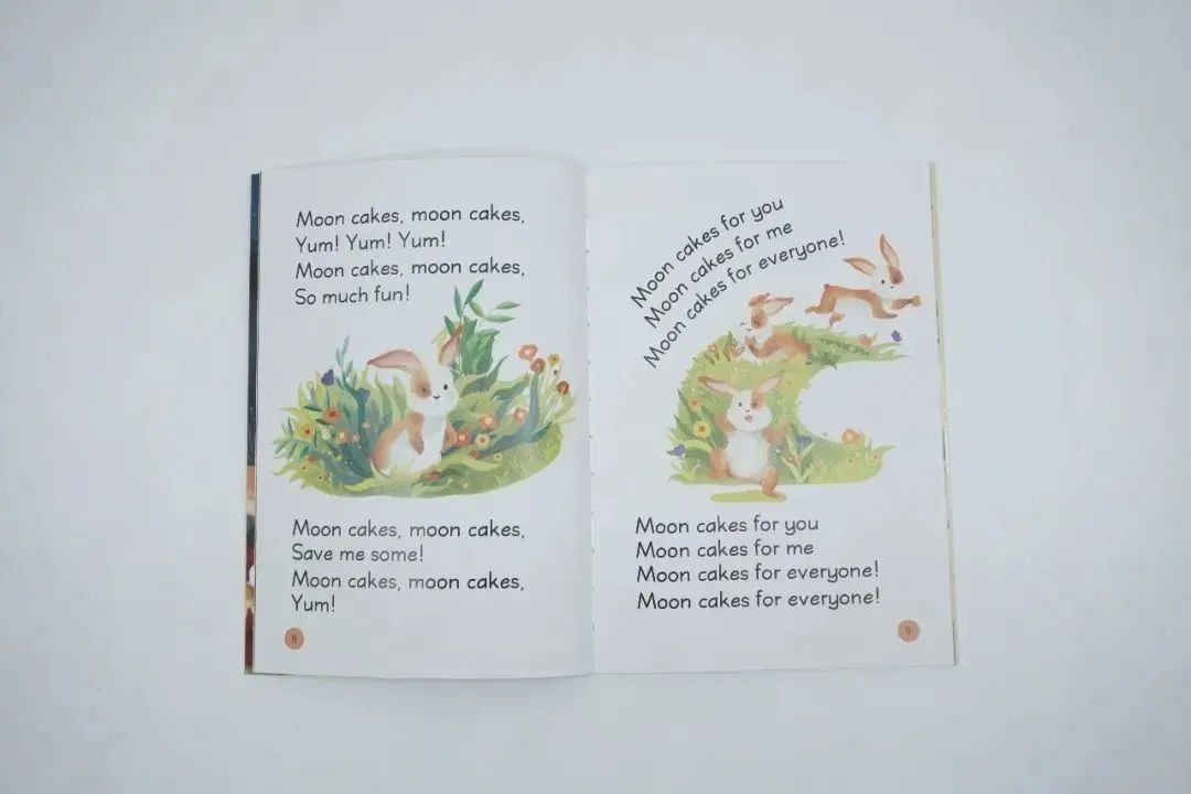 小朋友们都知道中秋节要吃月饼,在吃月饼的时候,再听到这首好听又简单的旋律,他们自然而然会知道“Moon Cakes”就是月饼。当他们听到这首歌时,也会立马联想起吃月饼时的情景。这能让小孩子自然而然地记住单词所传达的意思。
