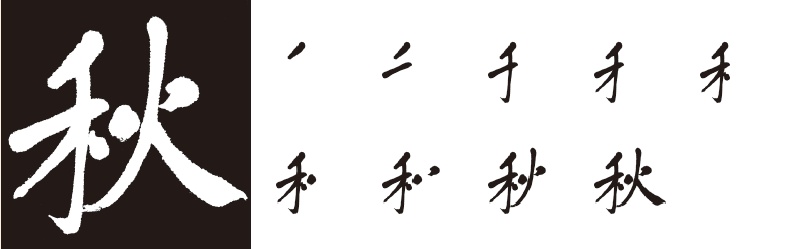 经过大篆、小篆、隶书的演变,“秋”的楷体应该怎样书写呢?我们在书法练习时,有哪些基本的笔法需要掌握呢?让我们来看看“秋”的楷体是怎样一笔一划写出来的。