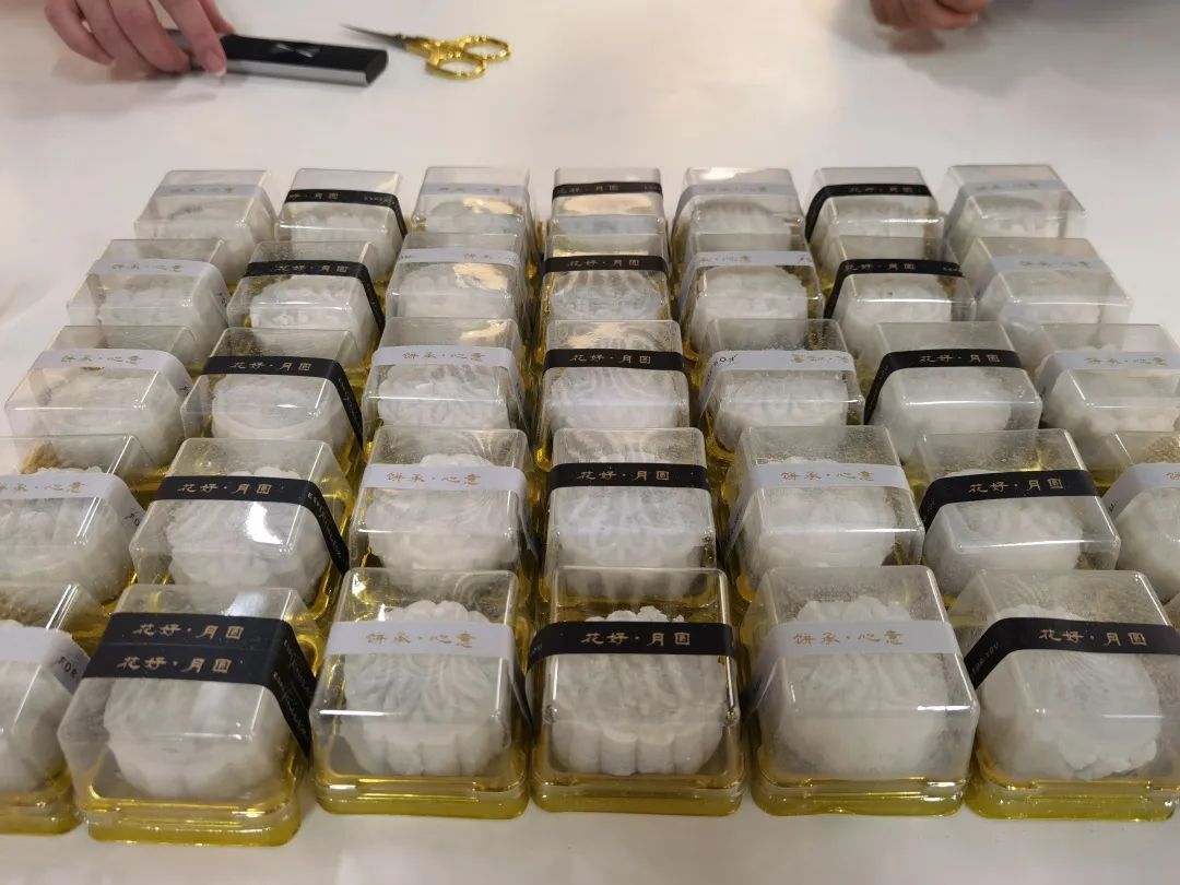 月饼制作完成后,居民们开始装盒,在盒子外贴上好看的装饰带。陆陆续续有其他居民来到活动现场,制作月饼的居民开心地招呼他们品尝自己的得意之作。“好吃,好吃!”“这月饼不错,一点都不腻!”大家还表示,要把月饼送给社区里的老年人品尝,送给为疫情防控、创全工作等辛苦奔忙的社区志愿者品尝。