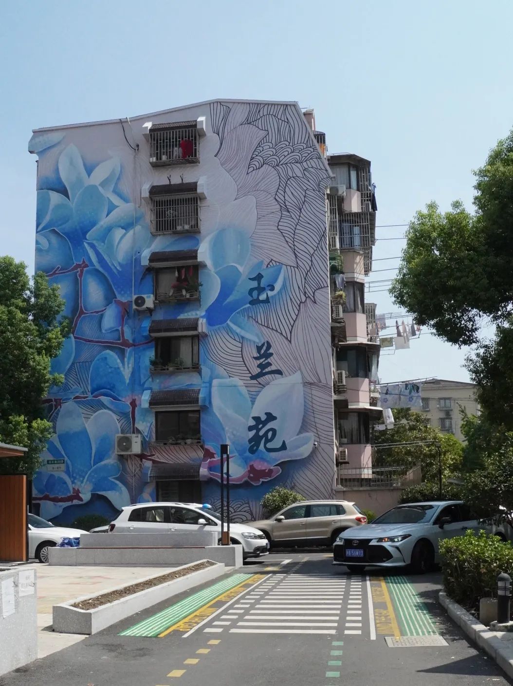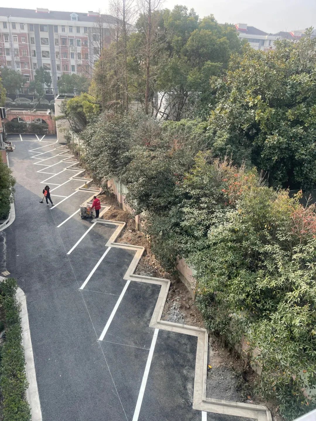 淞虹公寓是个建成于1998年的老旧商品房小区。随着房龄的增长,以前小方砖铺成的小区道路出现断裂、松动等现象,常常积水难行,给居民出行带来诸多不便。借助去年“一街一品”项目的契机,淞虹公寓对小区11000平方米的道路进行改造美化并划设车位线路。如今,坑洼不平的小方砖不见了,取而代之的是平坦整洁的路面,清晰可见的引导线,还有整齐统一的停车位。